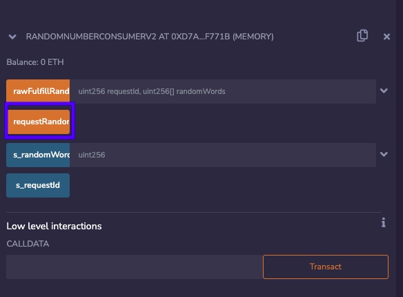 2. Under DEPLOY & RUN TRANSACTIONS, select RandomNumberConsumerV2.